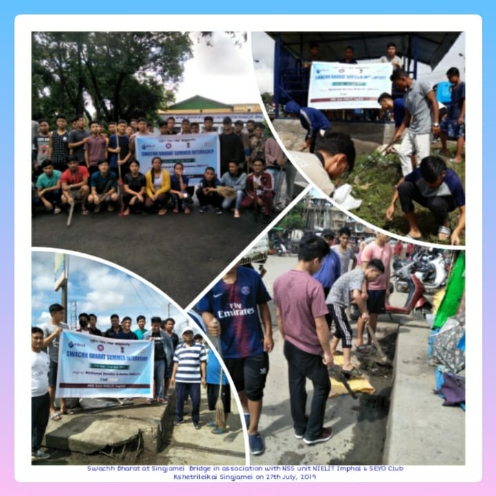 Swachh Bharat Summer Internship (21st July - 31st July 2019) at Singjamei Bridge in association with National Service Scheme(NSS) unit NIELIT Imphal & SEYO Club Kshetrileikai Singjamei on 27th July, 2019.