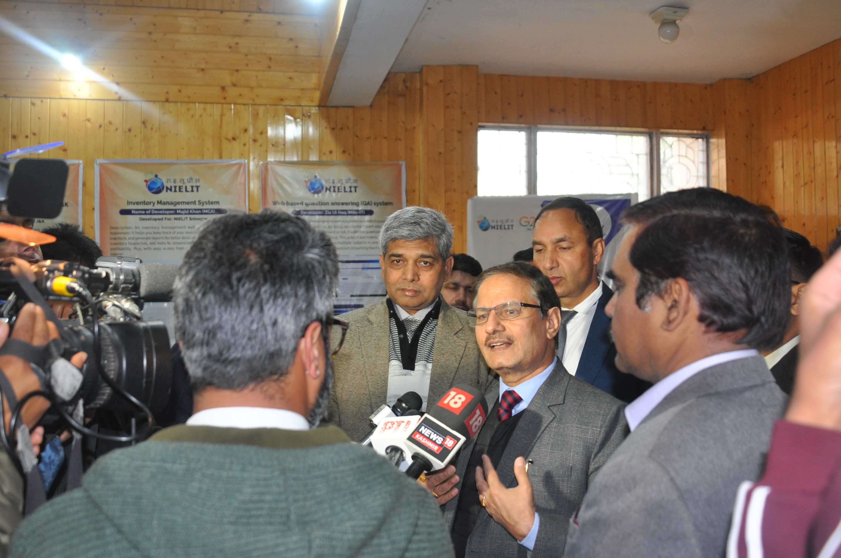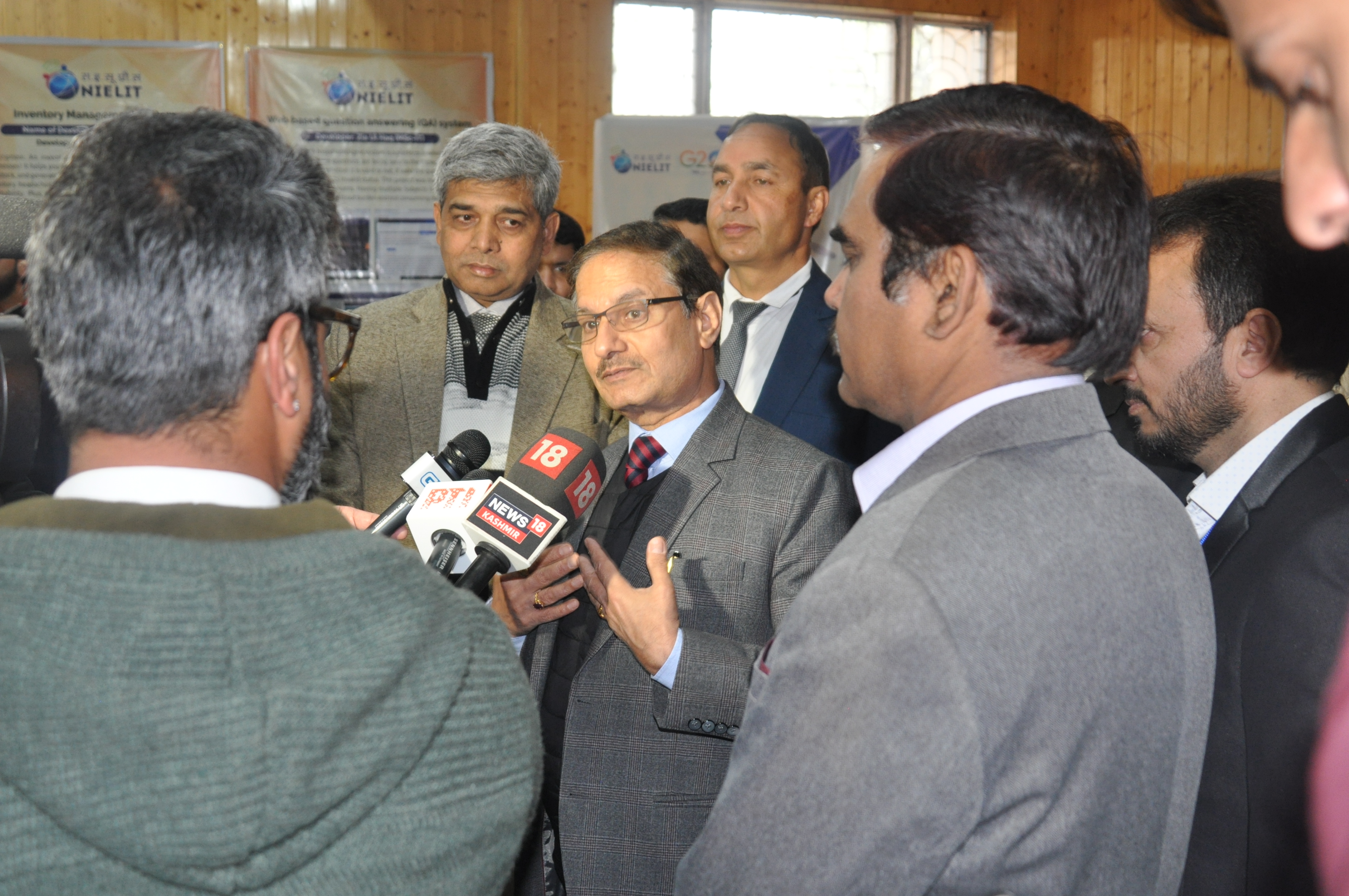Shri Alkesh Kumar Sharma, Secretary, Ministry of Electronics & Information Technology while addressing the gathering appreciated the efforts done by NIELIT J K in imparting IT training with the U.T J&K. He stressed the youth to work towards making India a talent nation. He also highlighted that in next 5 years the objective is to up-skill/ re-skill 100 million people in emerging technologies. He further stressed the youth for initiating start-ups. While appreciating the initiative taken by NIELIT to setup an Artificial Intelligence lab, he highlighted that India is going to become second largest eco-system in AI technology. While applauding the projects presented by students of NIELIT, he said that it will be the endeavour of the MeitY to provide every possible help to the youth of J & K for increasing their competencies in the field of Information Technology. While highlighting the role of IT Dept., Govt of J&K, he added that maximum services have been made online in the U.T and e-Governance is being leveraged to its maximum.