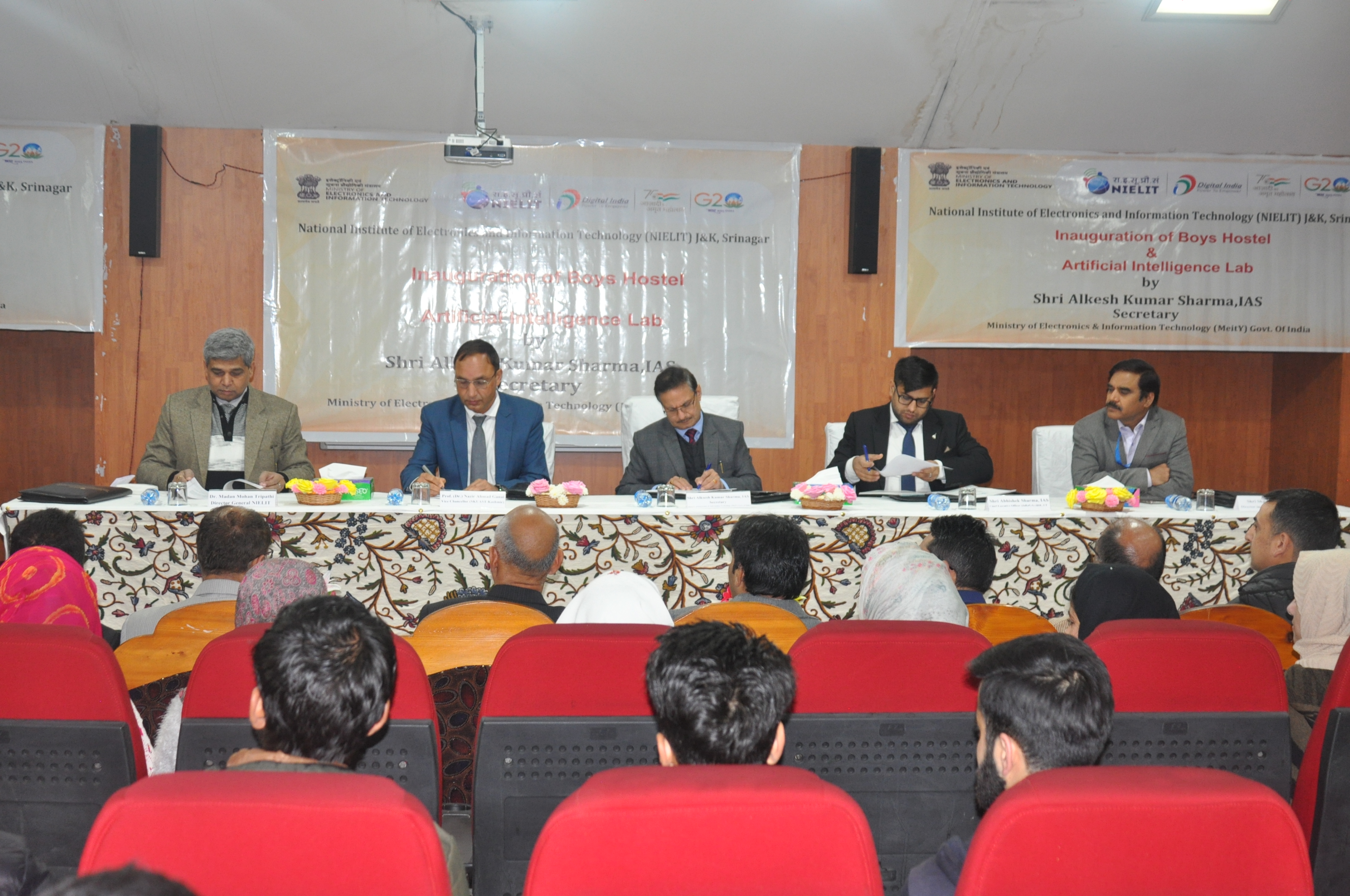 Dr. Madan Mohan Tripathi, DG NIELIT welcomed the chief guest, Shri Alkesh Kumar Sharma and other dignitaries. He also highlighted that NIELIT is continuing to expand its presence in the region of J&K to provide quality skilling in Electronics and Information Technology. The Inauguration of Boys Hostel and AI lab is a step further for imparting necessary and emerging skills to the youth of J&K.