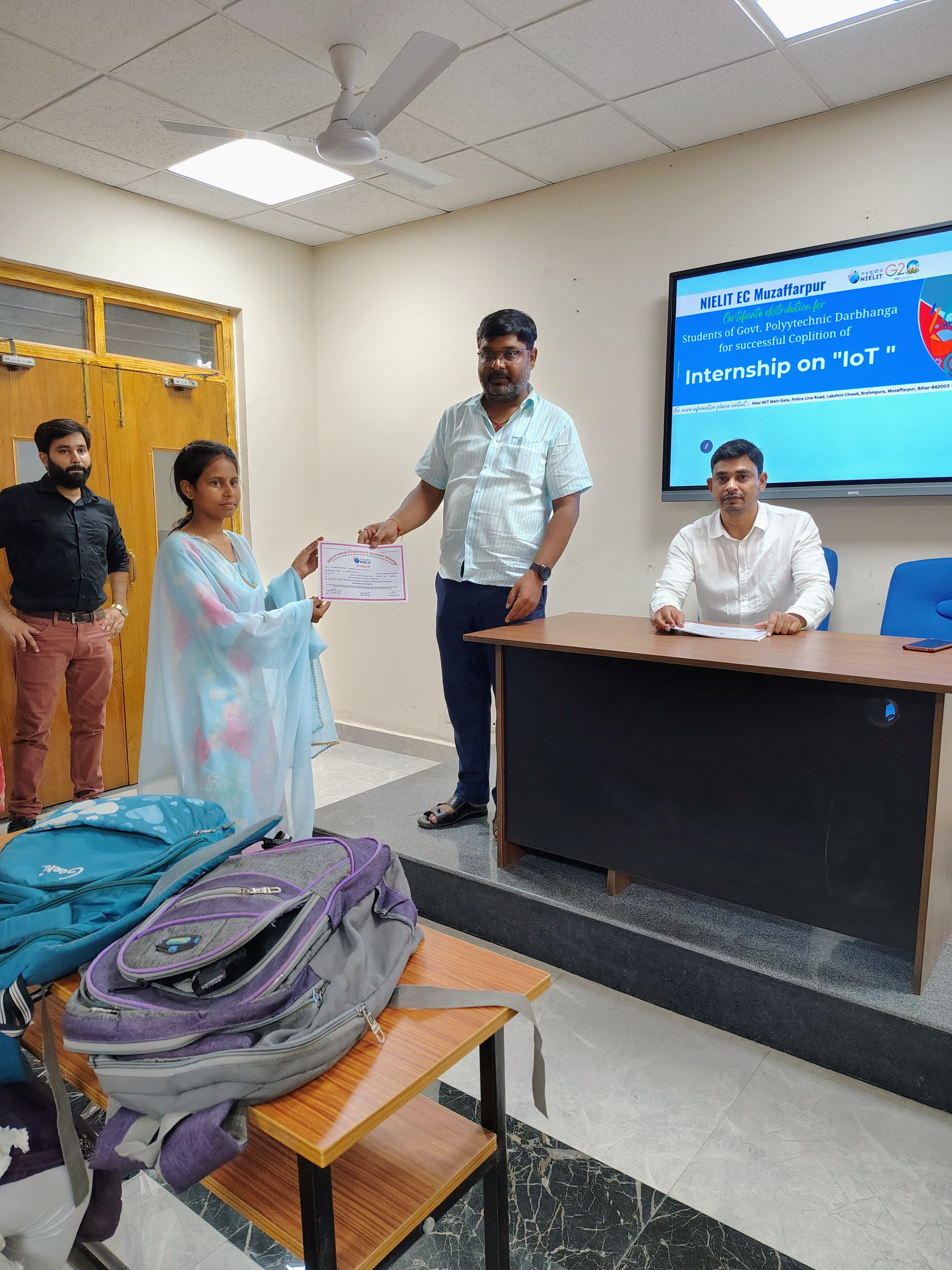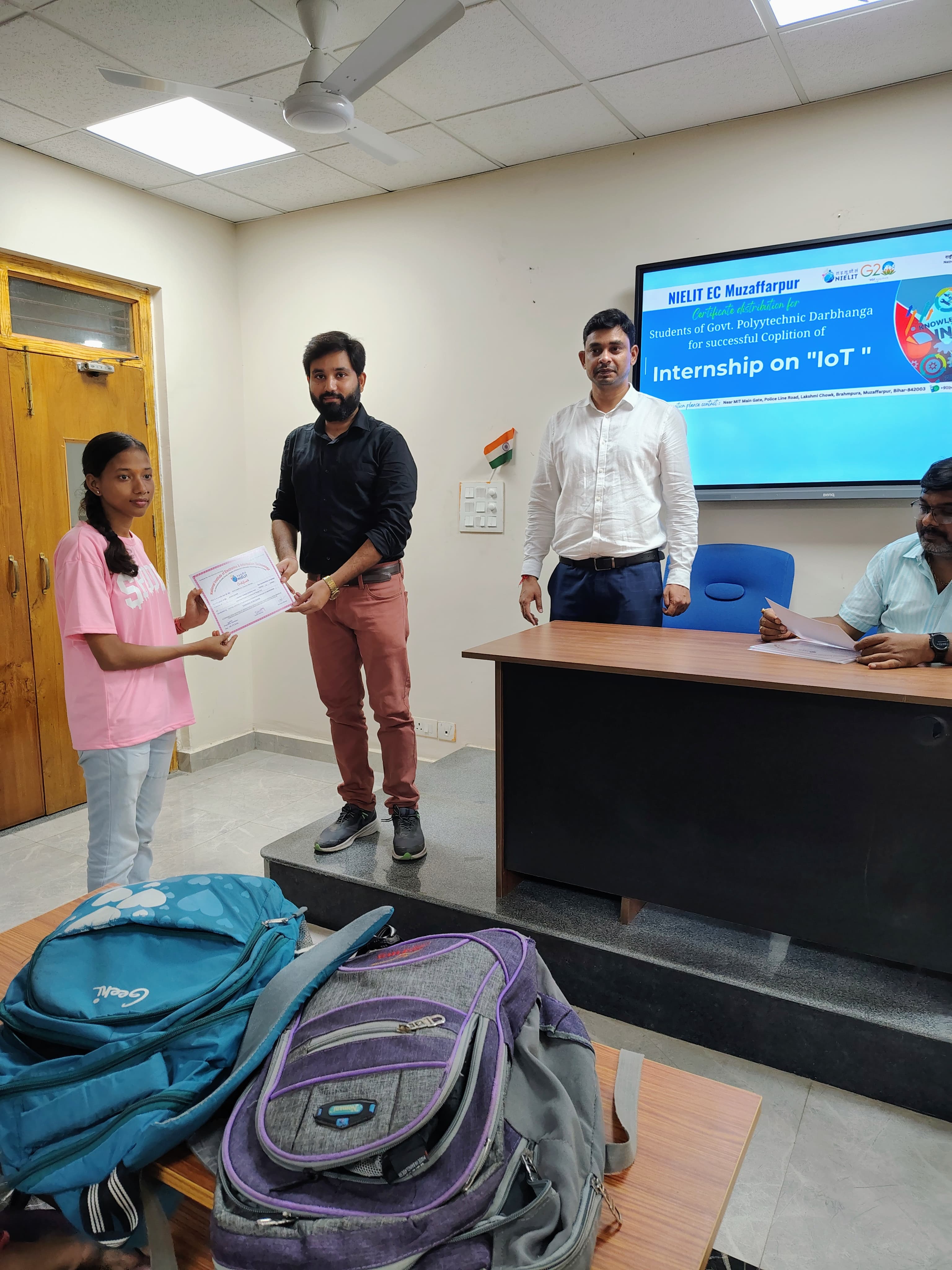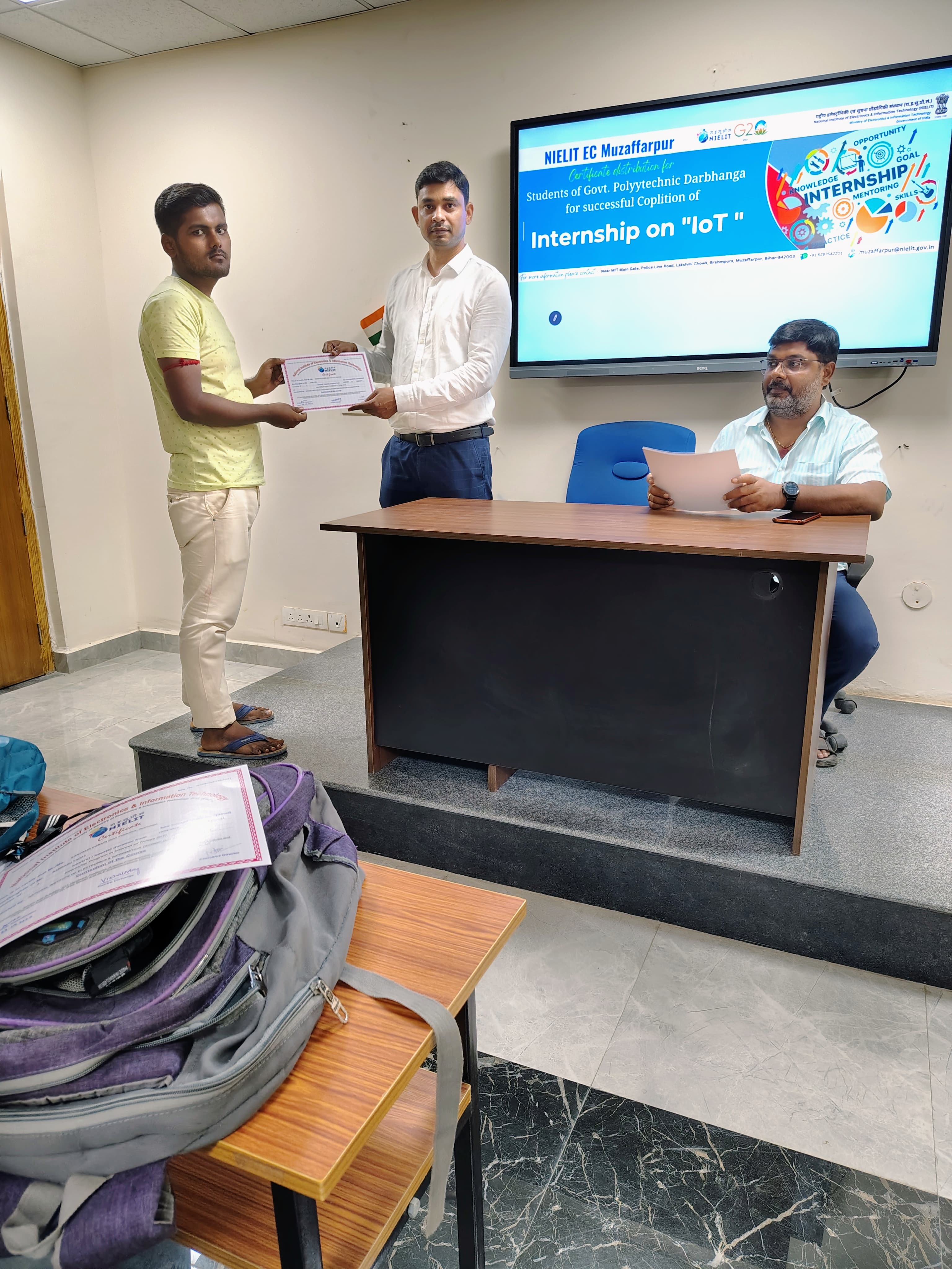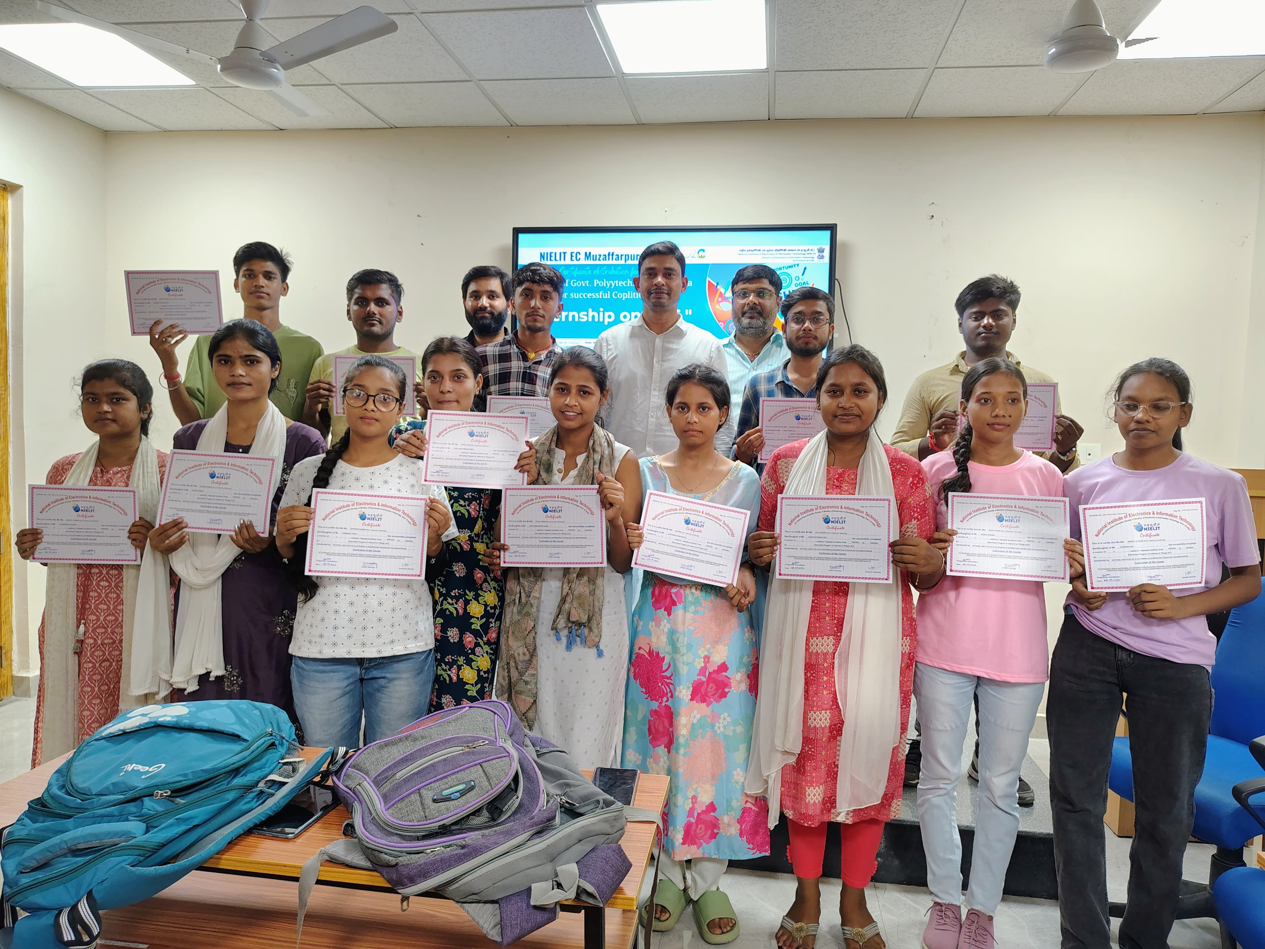 Certificate Distribution progam for the students of Govt. Polytechnic Darbhanga after successfully completion of Internship Program in IoT at NIELIT EC Muzaffarpur on 23-09-2024.