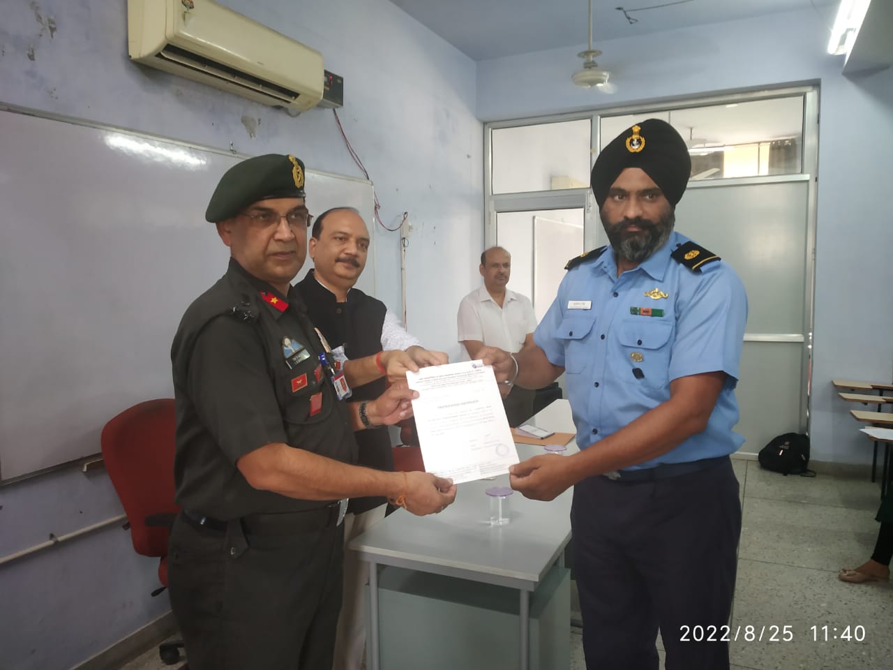 NIELIT Chandigarh successfully completed training of Directorate General of Resettlement (DGR) sponsored defense officials in NIELIT 'O' Level Course commenced from 7-02-2022 to 25-08-2022 having 45 participants. Brig. L.K Bhardwaj ,VSM (ADG-DGR) .Mr.Subhanshu Tiwari (Executive Director),Dr. Manish Arora (Add Director) graced the valedictory programme of NIELIT 'O' Level batch with their auspicious presence and awarded the certificates to the participants.