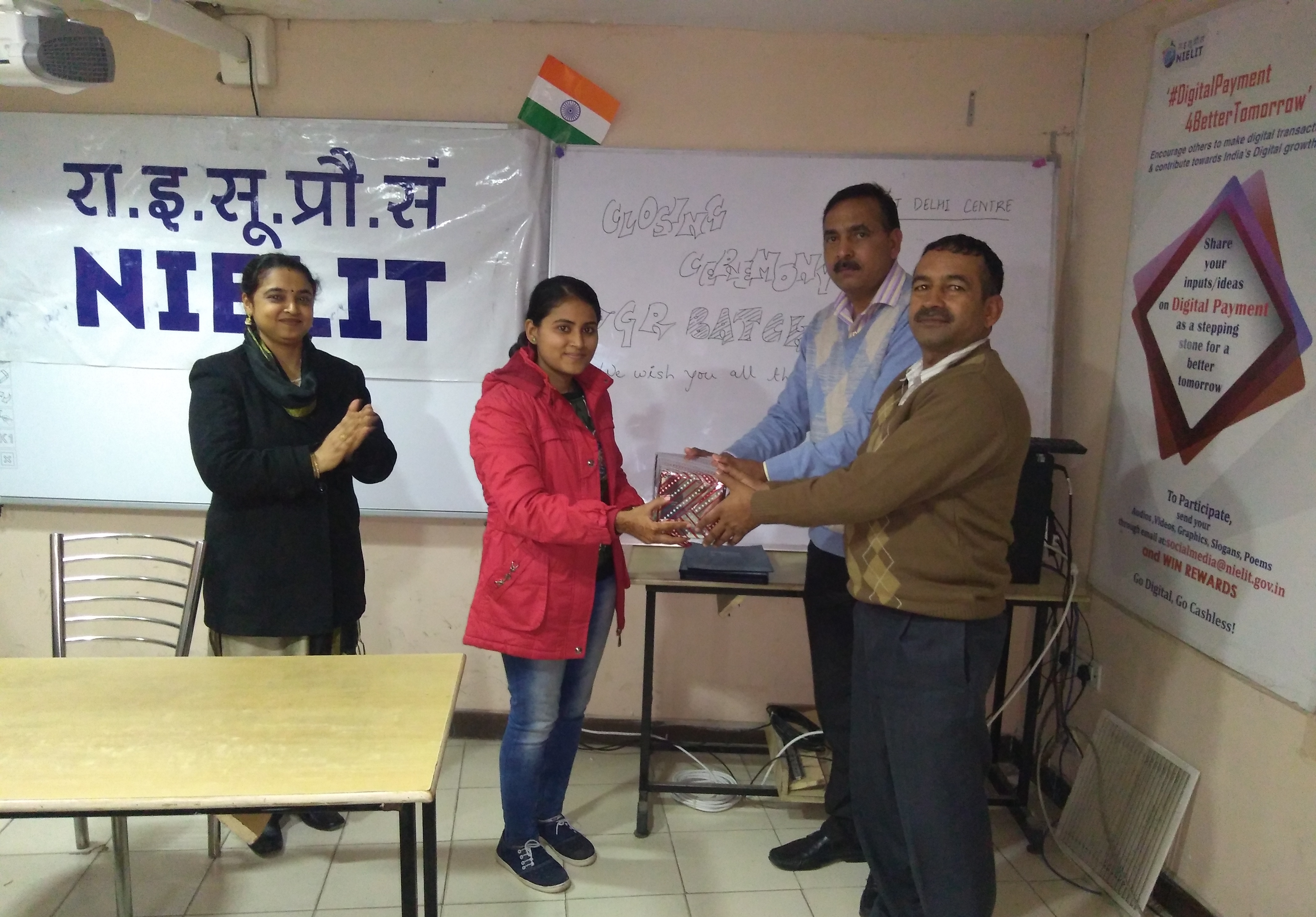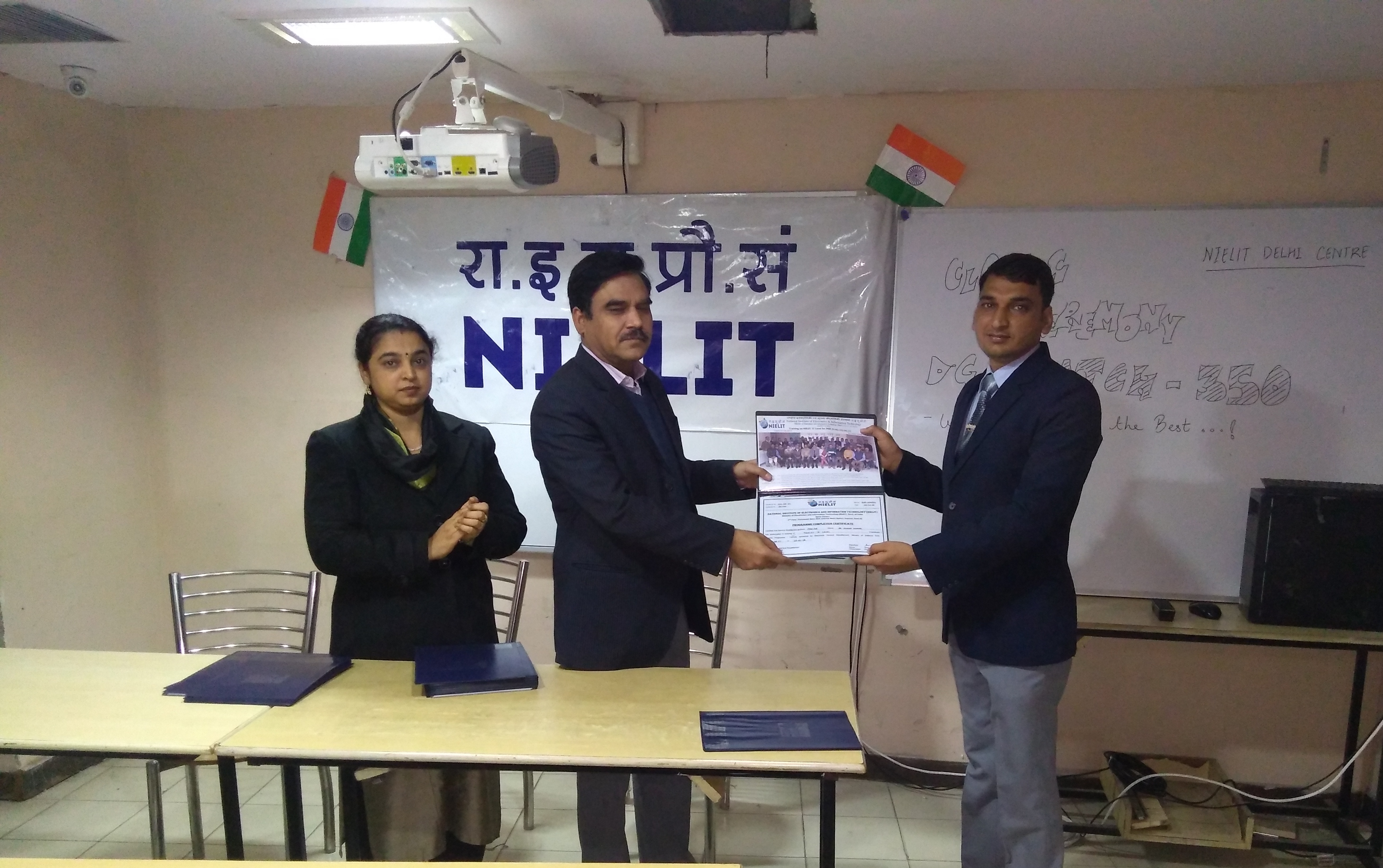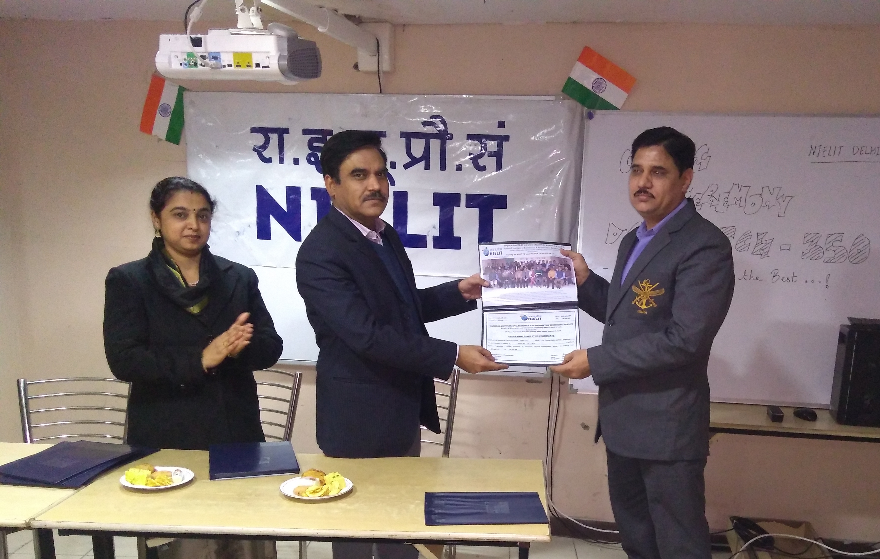 Nielit Delhi centre has successfully completed one batch of training of NIELIT “O” Level for  JCOs/ORs , sponsored by Directorate General Resettlement. The training was conducted wef 7-8-2017 to 28-01-2018 for a batch of 45 candidates of Army, Navy and Air Force. The centralised examination and practicals were conducted successfully.  Sh. Shameem Khan, Director Incharge of Centre distributed participation Certificates to all candidates and felicitated them for their successfully​completion of training.