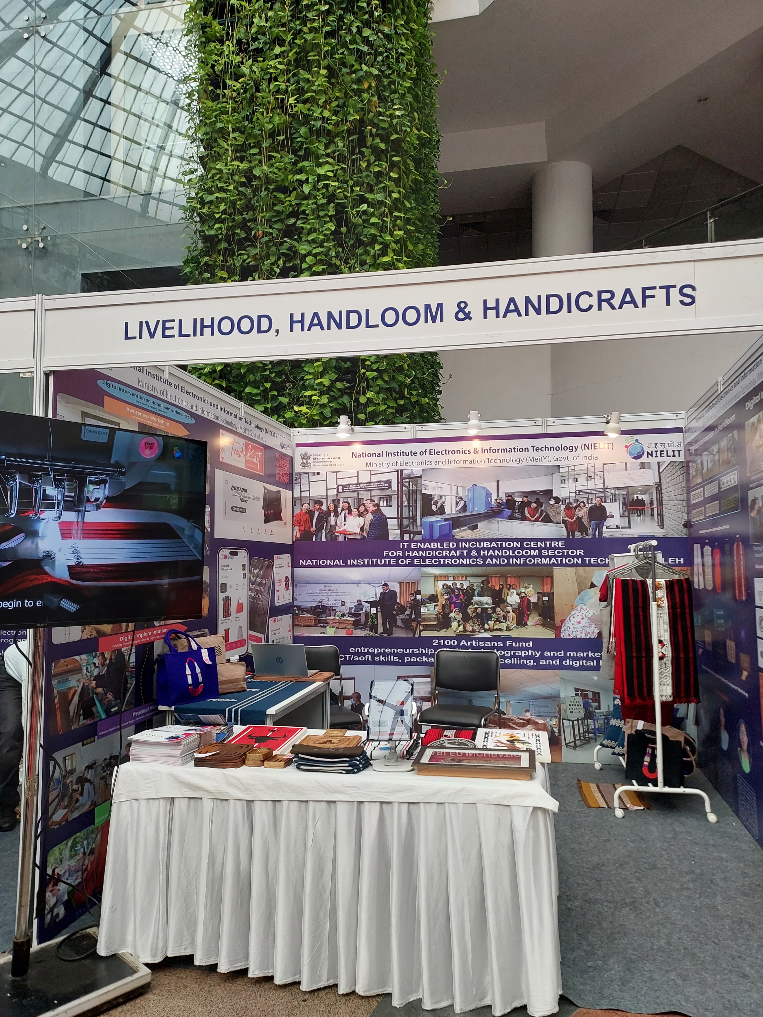 The grand launch was marked by a vibrant exhibition showcasing innovations and initiatives from NIELIT Centres across India. Each centre highlighted unique contributions toward building a digitally empowered society. Among them, NIELIT Kohima made a remarkable impression by exhibiting its initiatives under the themes of Cyber Security, Start-up Promotion, and Digital Empowerment in Handloom & Handicraft.