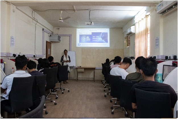 The outreach series began on 22nd October 2025 with an in-house awareness session at NIELIT Dimapur, attended by 52 students. Ms. Dimpy Dey, Faculty (AI), served as the resource person and introduced participants to YUVAi’s vision, eligibility, and registration process. Students were guided on framing AI-ready problem statements under the core themes of Community Empowerment, Core-Sector Transformation, Smart Ecosystems, and Open Innovation. A live registration walkthrough and mentorship discussion encouraged students to form teams and prepare proposals. The event concluded with positive feedback, highlighting the enthusiasm of students to participate in the national-level challenge.