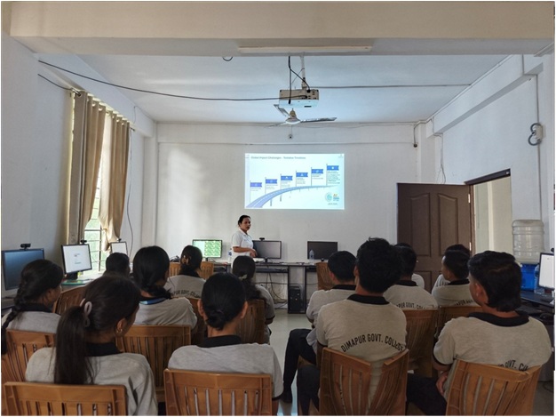 The next session was held on 29th October 2025 at Dimapur Government College, engaging 40 students. Ms. Sanjana Lama served as the key resource person, briefing participants on YUVAi’s objectives, eligibility, and submission process. The session also emphasized mentorship support, evaluation milestones, and national showcase opportunities. Pamphlets containing detailed registration guidelines were distributed to both students and faculty members. The interactive Q&A session encouraged idea generation, with several student groups beginning to outline project concepts.