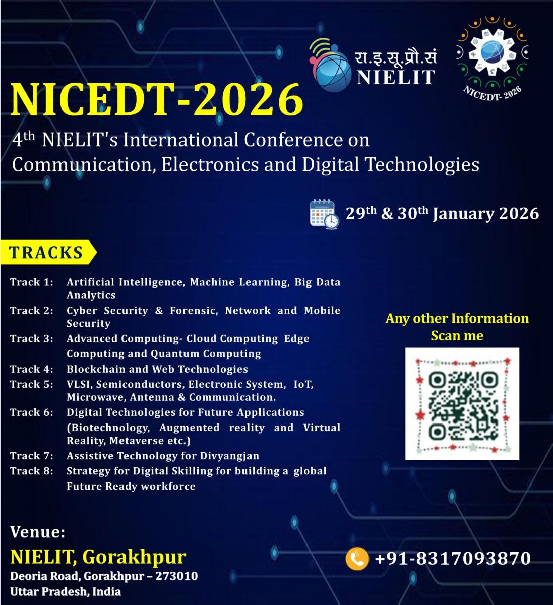 Call for Papers for NICE-DT 2026 (4th NIELIT International Conference on Communication, Electronics, and Digital Technologies)