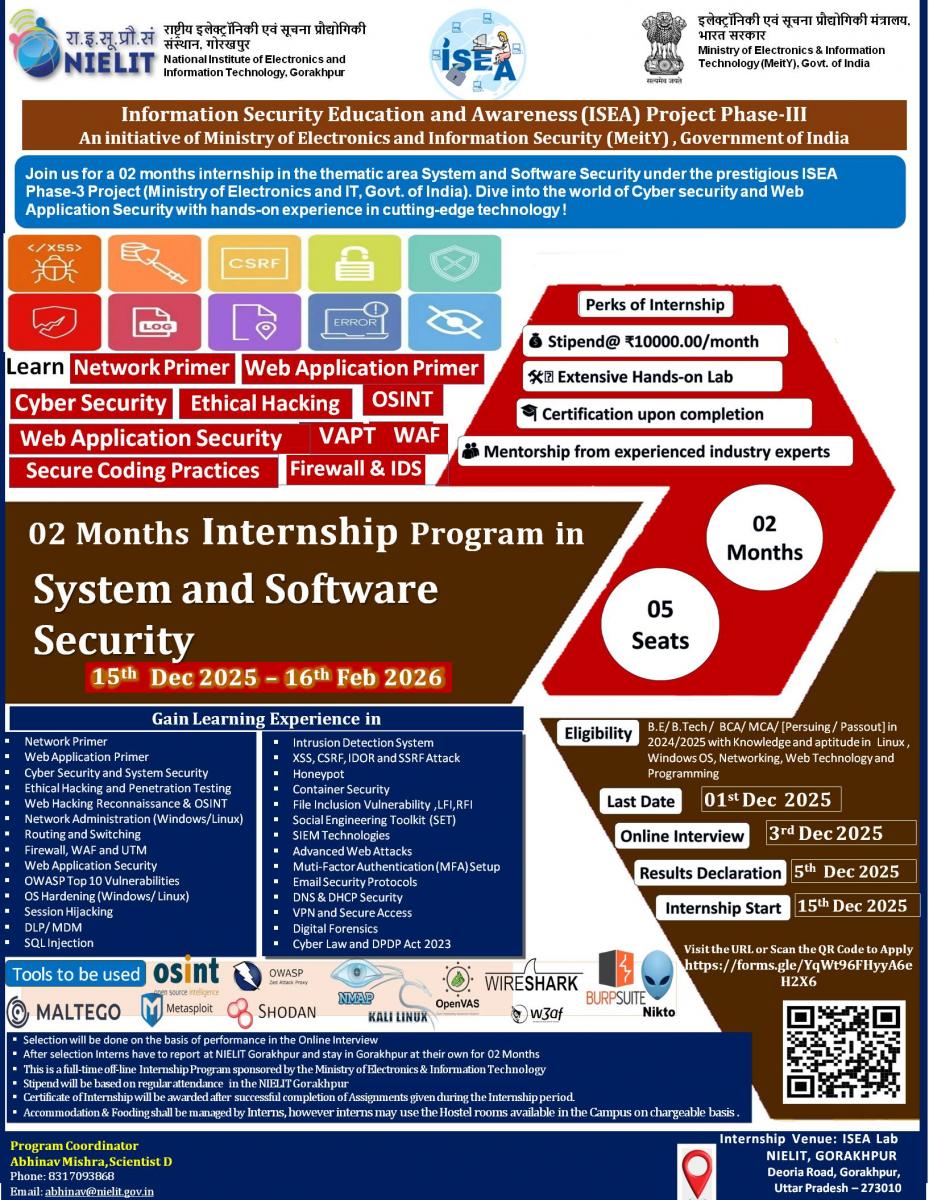 02 Months Internship Program in System and Software Security under the ISEA Phase–III Project (MeitY, Government of India)