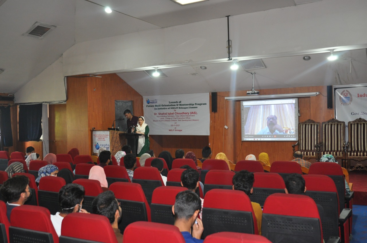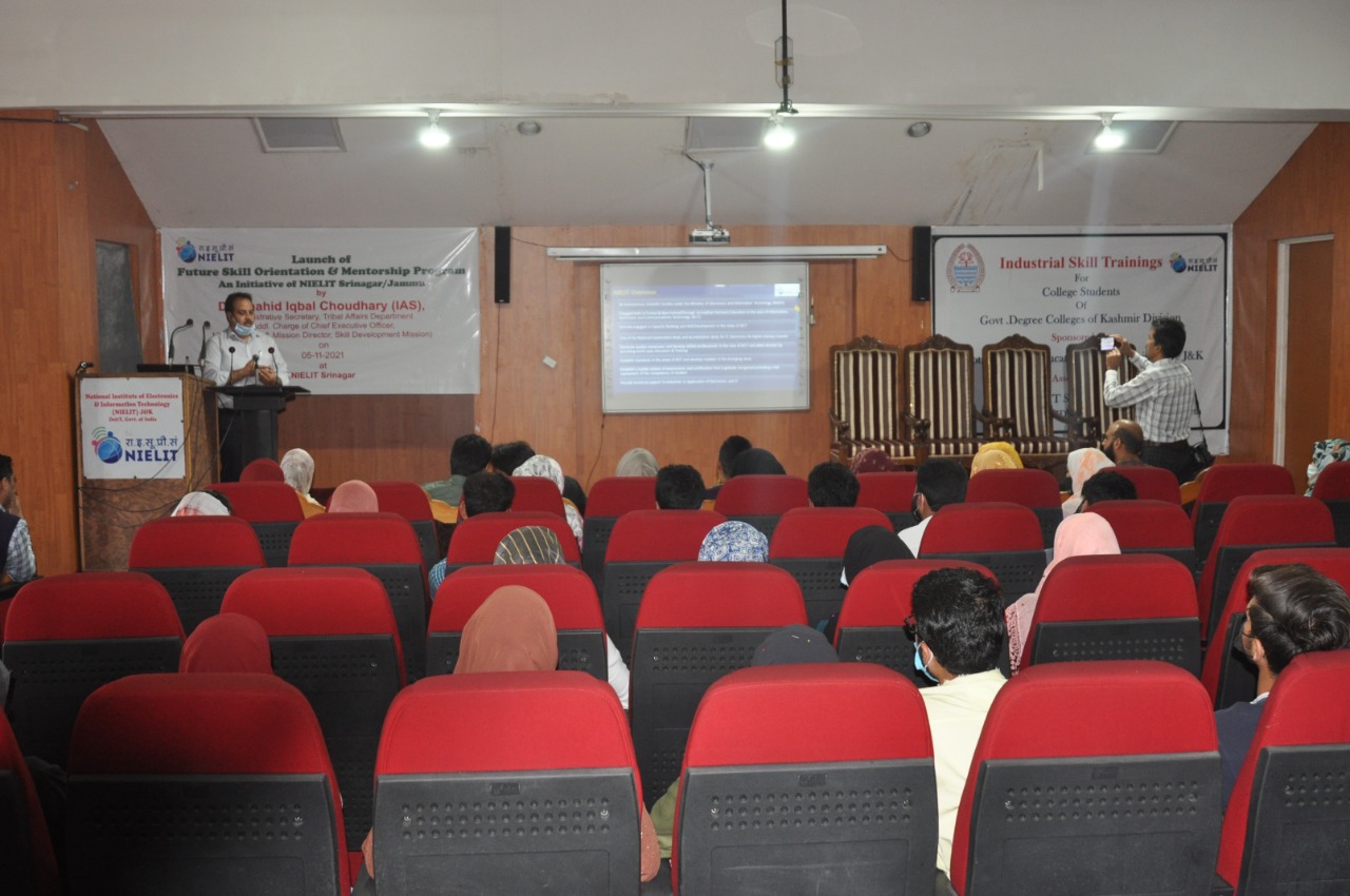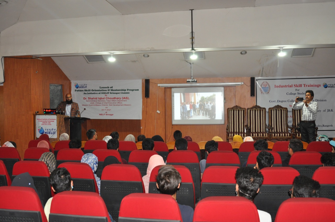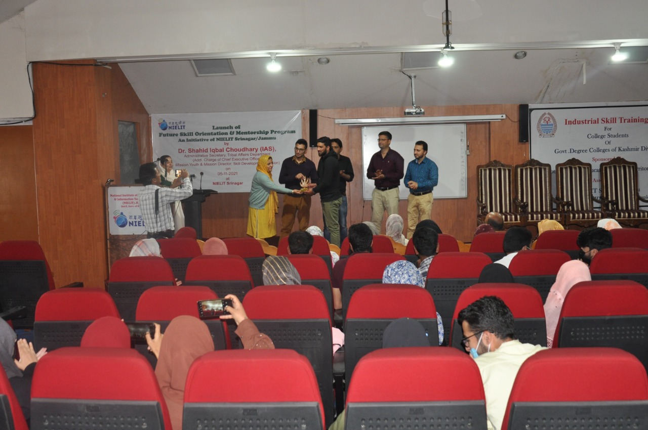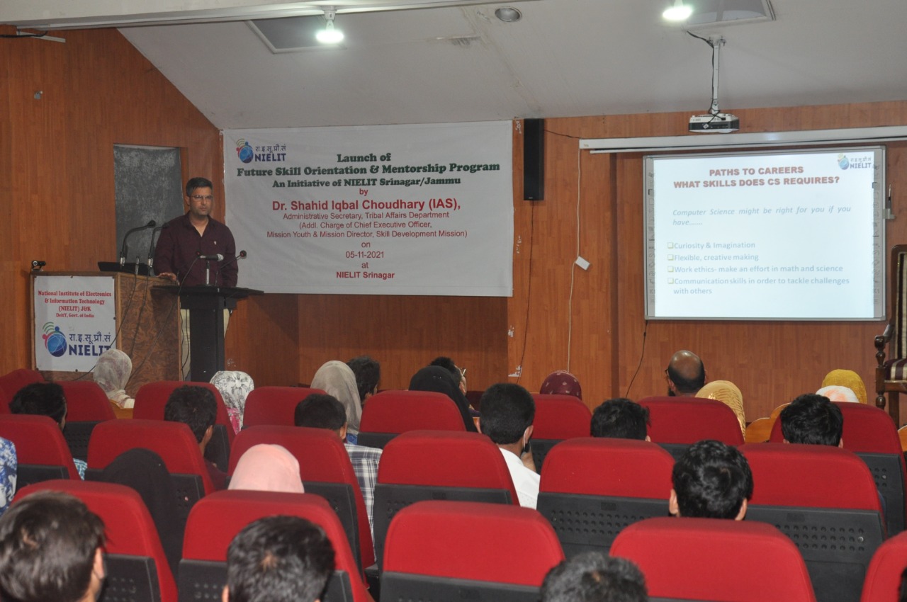 Sh.Ashaq Hussain Dar Officer In-charge NIELIT Srinagar gave a brief introduction about NIELIT and its various Skill Development Courses which are introduced for the benefit of the students. Dr Muneer Ahmad Dar, HoD (CS and IT), NIELIT Srinagar discussed about the career opportunities after 10+2 and asked the students to join various formal courses(BCA, BSc-IT, MCA and MSc-IT) and non formal courses (O/A/B level) under NIELIT J&K. Sh.Mudasir Bhat, VP Artificial Intelligence LeLafe IT Solutions and Andleeb Fatima ML Engineer alumni of NIELIT Srinagar presented their journey of success in a motivational speech. They talked about the qualified faculty, par excellence infrastructure and high quality of education being imparted at NIELIT Srinagar and emphasized upon the students to join NIELIT Srinagar for pursuing their education after 10+2.