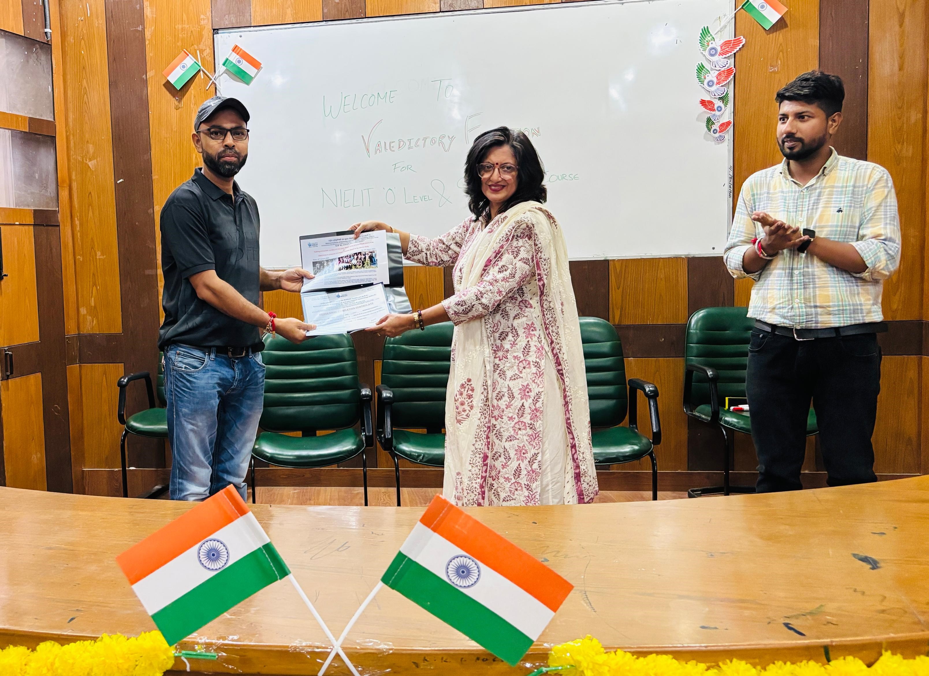 The Valedictory Ceremony, held on 14th August 2025, was graced by Ms. Sheetal Chopra, Additional Director & OIC, NIELIT Delhi, who, along with Programme Coordinator Sh. Ankur Pruthi and Ms. Divya Kulhar, Scientist B , awarded the certificates and felicitated the participants. In her address, Ms. Chopra commended the dedication of the trainees and emphasized the importance of adaptability and continuous learning in achieving success in post-service careers. The participants expressed heartfelt gratitude for the opportunity facilitated under the aegis of DGR. They credited the structured curriculum, extensive hands-on training, and the continuous support of NIELIT’s faculty for instilling in them the confidence to pursue new avenues in IT and digital technologies. Many acknowledged that the programme provided not only technical proficiency but also the motivation to transition successfully into second careers beyond their distinguished service in the Armed Forces.