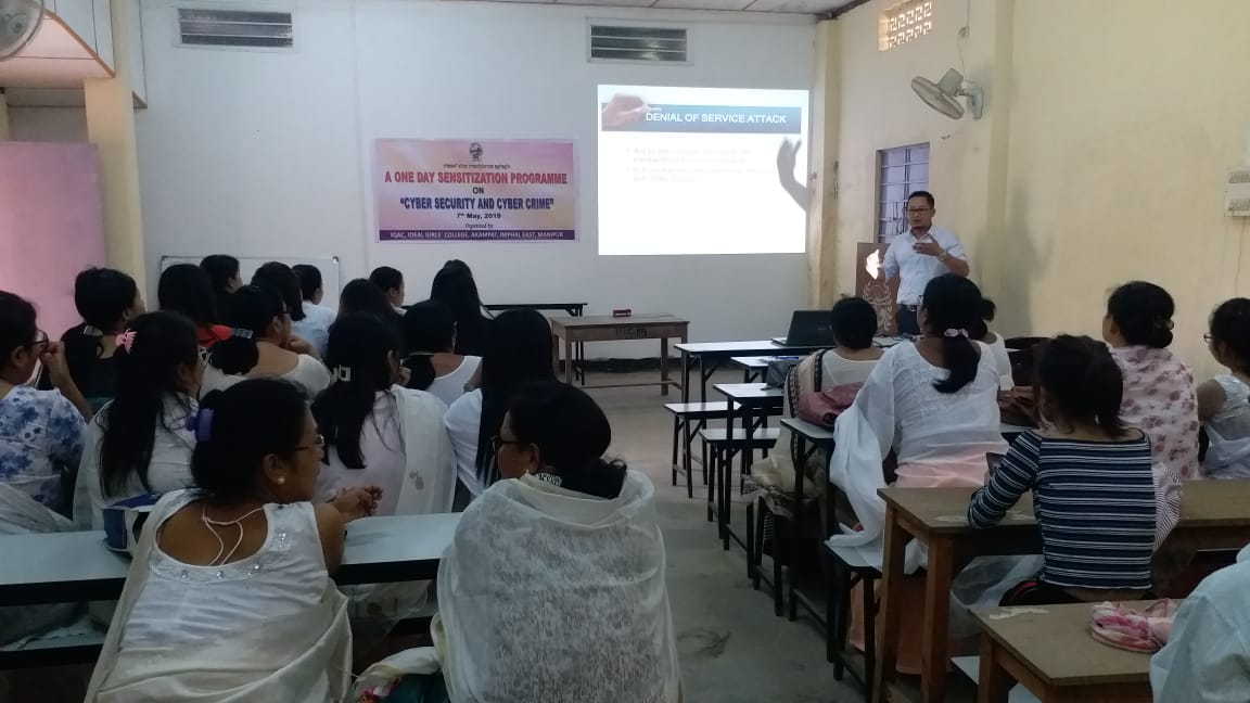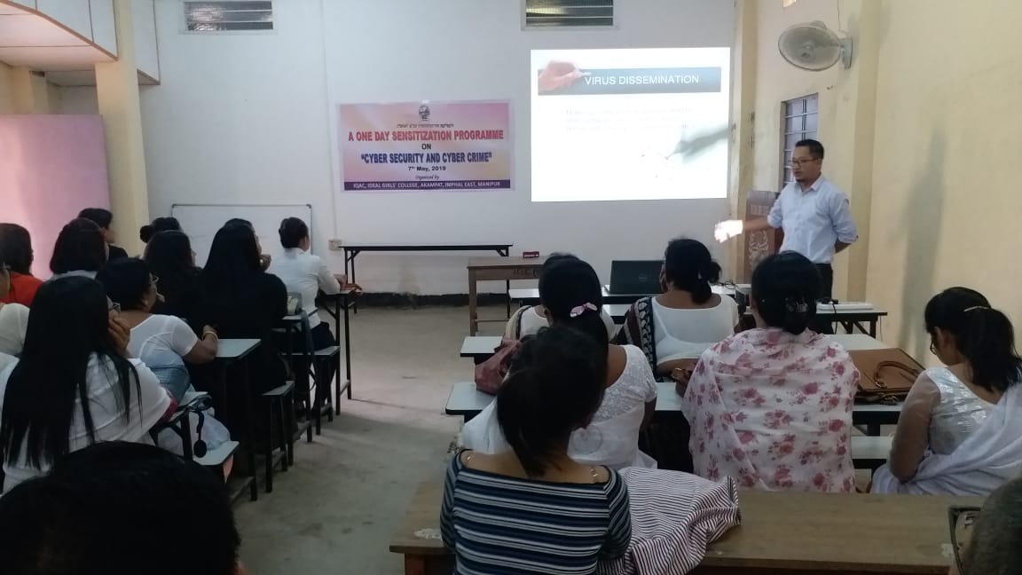 A One day Sensitization programme on "Cyber Security and Cyber Crime" conducted by Shri N. Dinamani Singh, GF NIELIT imphal on 7th May, 2019 organised by IQAC, Ideal Girls' College, Akampat.