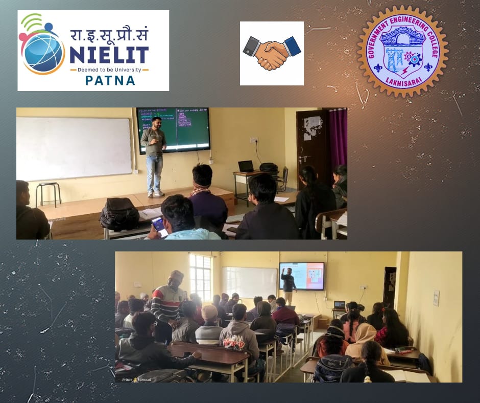 राष्ट्रीय इलेक्ट्रॉनिकी एवं सूचना प्रौद्योगिकी संस्थान (NIELIT), पटना के अध्ययन केंद्र, गवर्नमेंट इंजीनियरिंग कॉलेज (GEC), लखीसराय में 22 दिसंबर, 2025 से NIELIT-प्रमाणित तकनीकी एवं डिजिटल कौशल पाठ्यक्रमों की शुरुआत की गई है। इस पहल का उद्देश्य क्षेत्र के युवाओं को आधुनिक तकनीकों में दक्ष बनाकर उन्हें रोजगारोन्मुखी और भविष्य के लिए तैयार करना है।