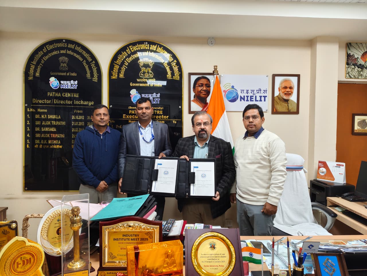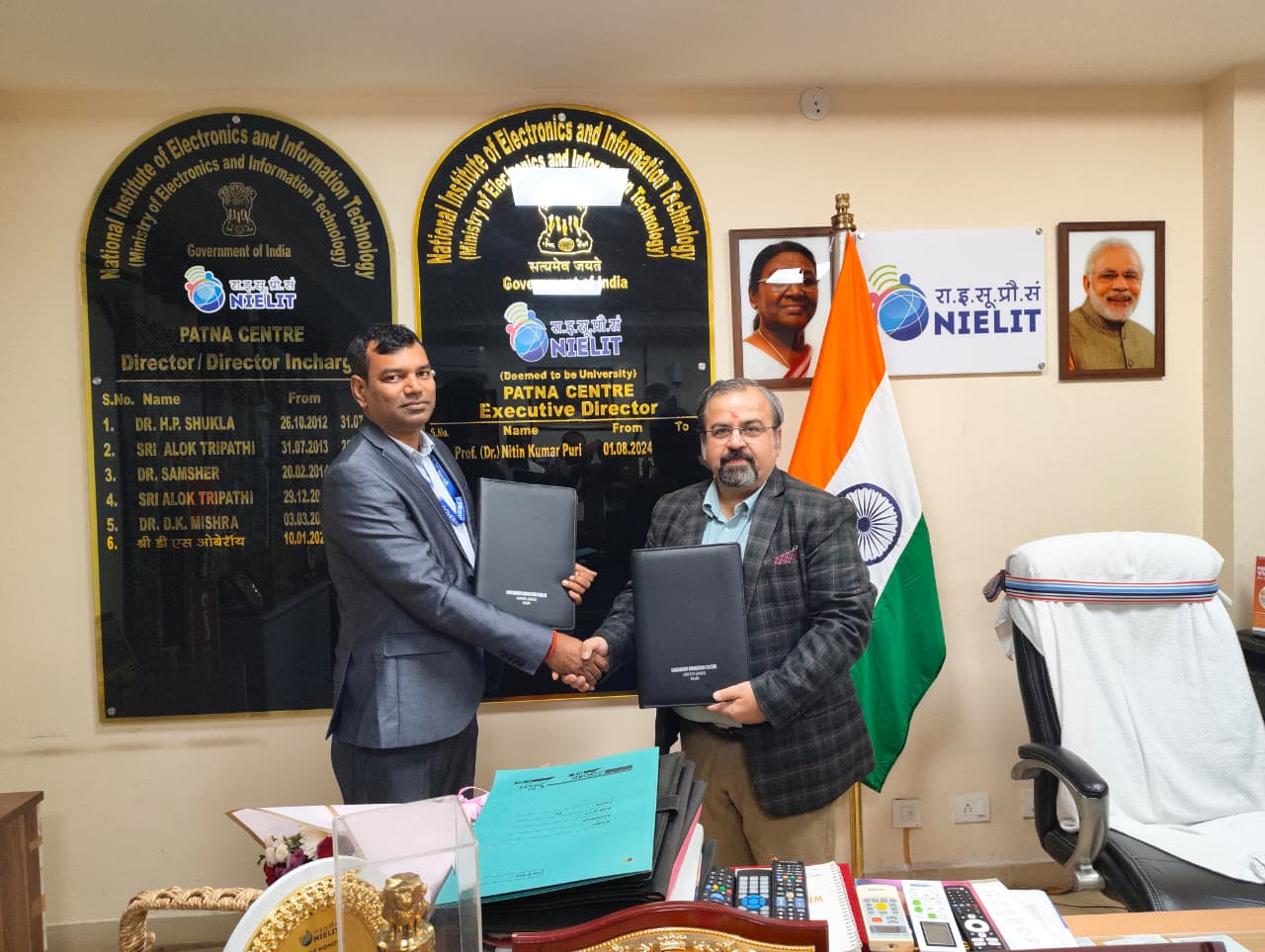 पटना/जमुई। जमुई जिले के विद्यार्थियों के लिए तकनीकी शिक्षा और डिजिटल कौशल के नए द्वार खुल गए हैं। राष्ट्रीय इलेक्ट्रॉनिकी एवं सूचना प्रौद्योगिकी संस्थान (NIELIT), पटना और राजकीय अभियंत्रण महाविद्यालय (GEC), जमुई के बीच 19 दिसंबर 2025 को समझौता ज्ञापन (MoU) पर हस्ताक्षर किए गए।