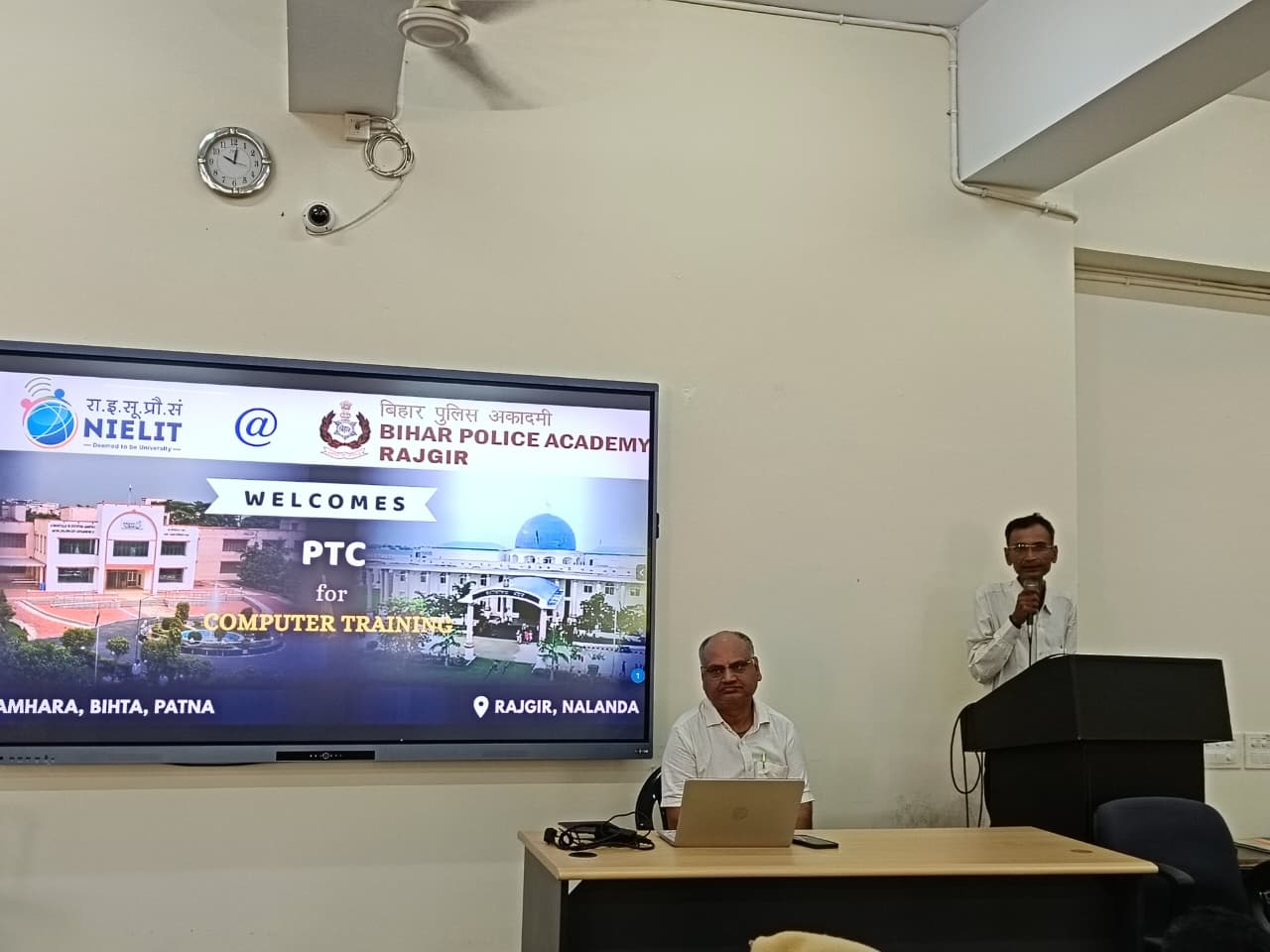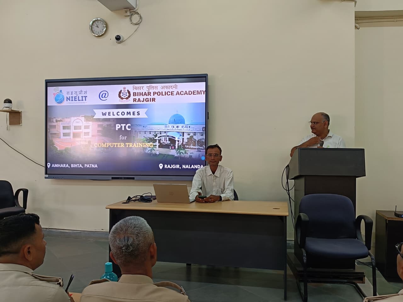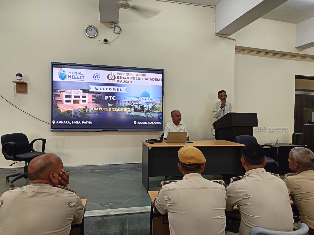 दिनांक 06.04.2026 को राष्ट्रीय इलेक्ट्रॉनिकी एवं सूचना प्रौद्योगिकी संस्थान (NIELIT), पटना द्वारा बिहार पुलिस अकादमी, राजगीर में PTC कॉन्स्टेबल प्रशिक्षण कार्यक्रम का सफल शुभारंभ किया गया।