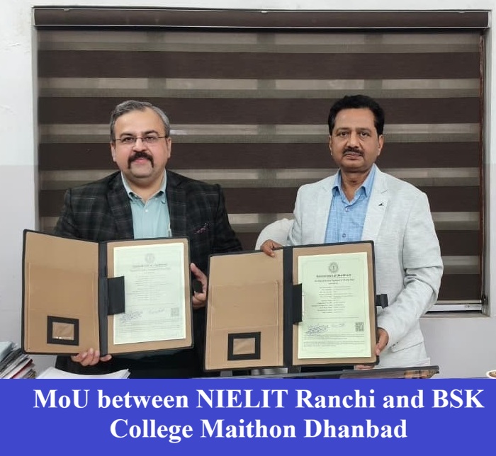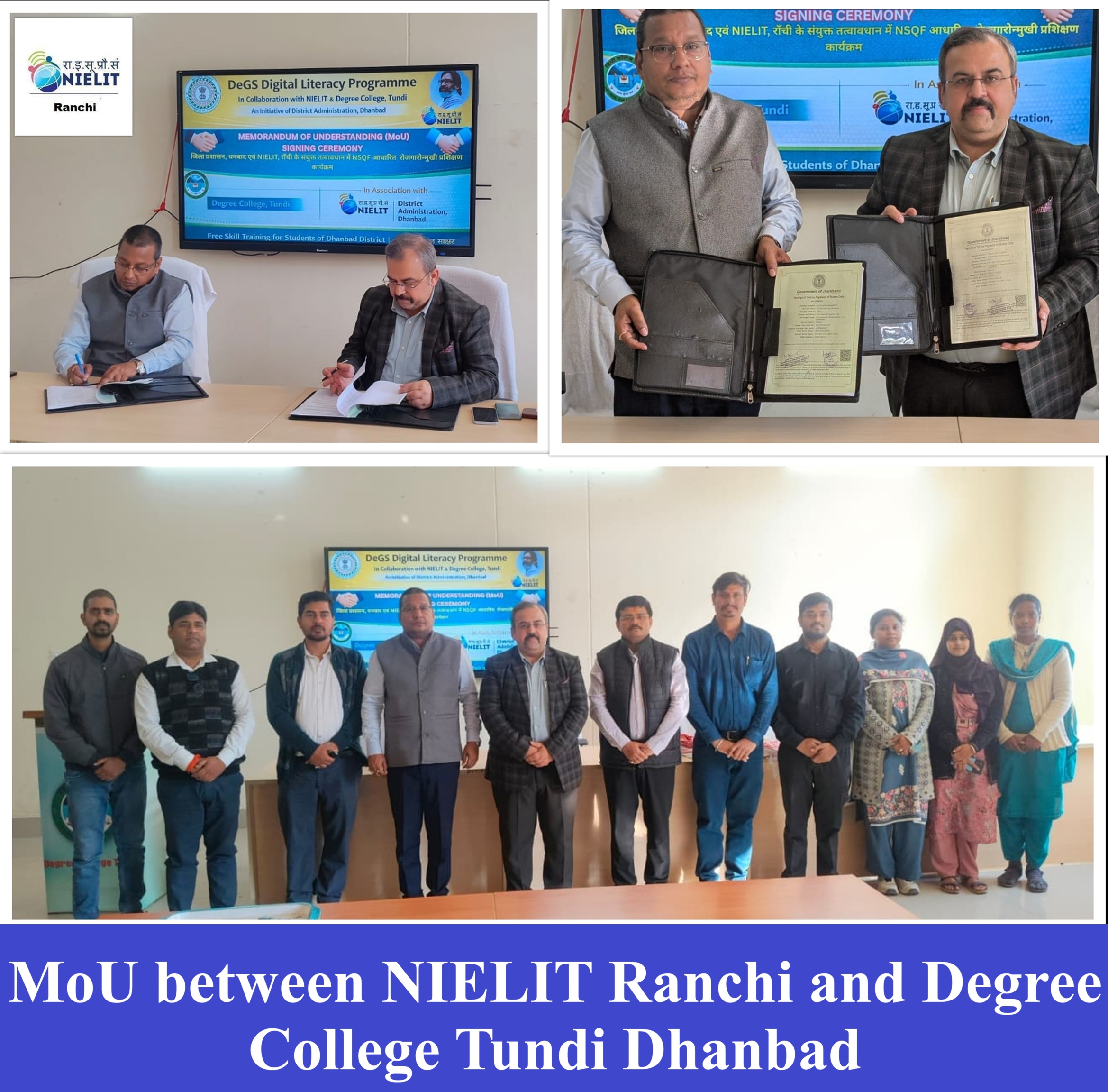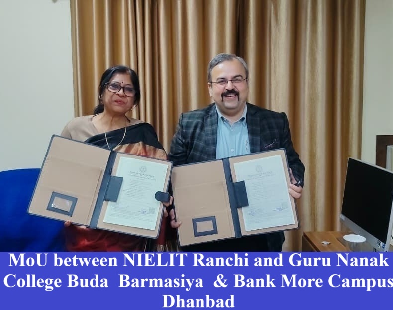 कौशल-आधारित शिक्षा को सुदृढ़ करने तथा डिजिटल इंडिया के विजन को आगे बढ़ाने की दिशा में NIELIT रांची ने 13 जनवरी 2026 को धनबाद के Government College Tundi , R S More College, Birsa Institute of Technology Sindri, BSK College Maithon एवं Guru Nanak College Buda Barmasiya & Bank More Campus Dhanbad के साथ समझौता ज्ञापन (MoU) पर हस्ताक्षर किए।