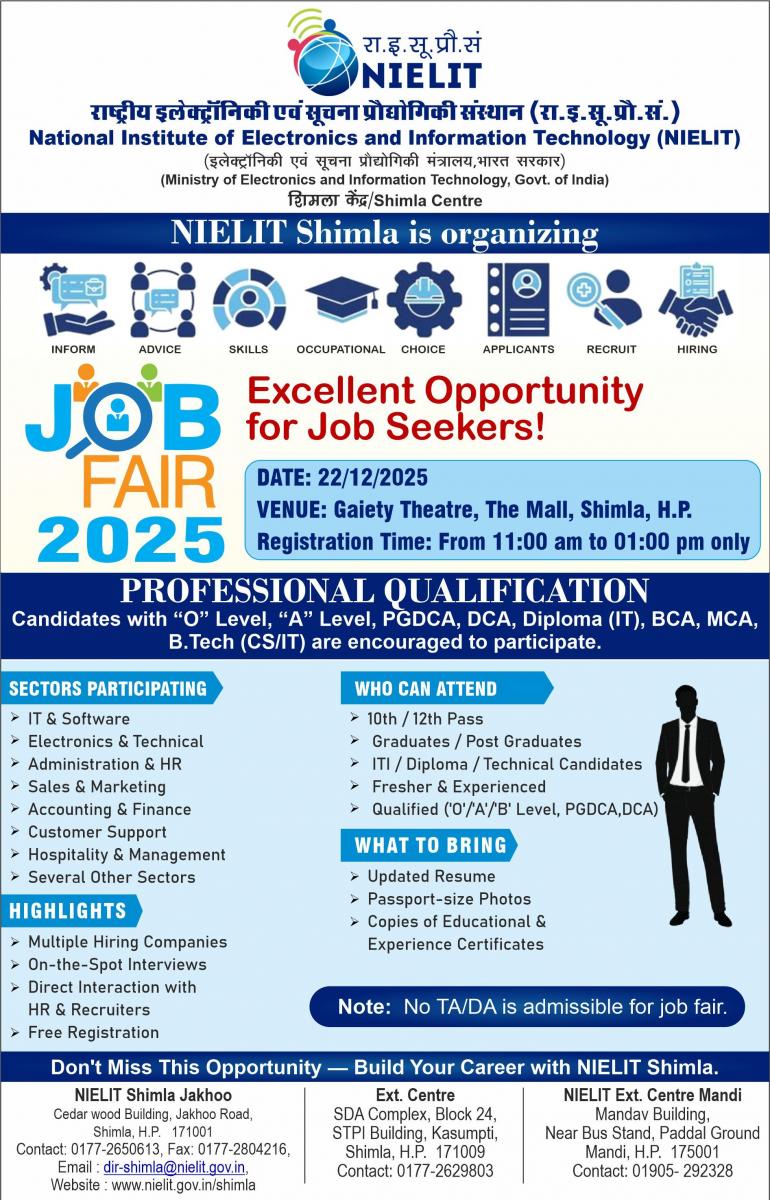NIELIT Shimla Organized Mega Job Fair in Roper on 10-12-2023.